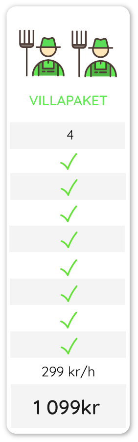 och ogräsmedel eller andra produkter som används ingår i priset.